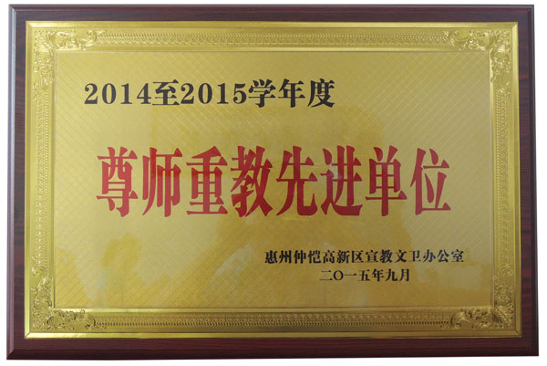 熱烈祝賀恒升實(shí)業(yè)有限公司2015年榮獲惠州市仲愷高新區(qū)評(píng)選為2014至2015學(xué)年度“尊師重教先進(jìn)單位”