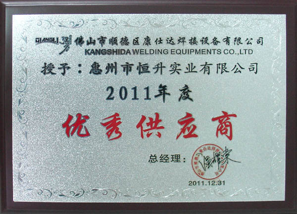 熱烈祝賀我司榮獲佛山康仕達(dá)焊接設(shè)備有限公司優(yōu)秀供應(yīng)商